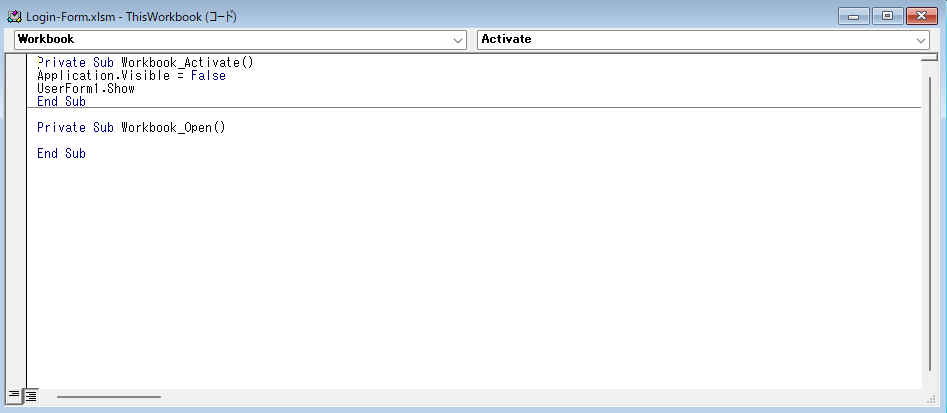 短い2行のみでファイル非表示、ユーザーフォームを表示。
