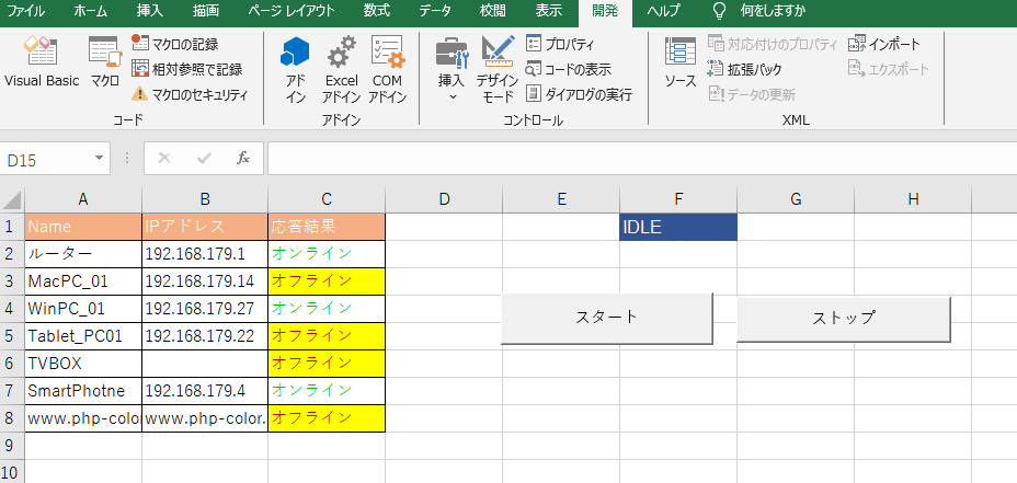 IPアドレス管理表を照らし合わせてPing疎通確認が煩わしく。エクセルを開いてVBAからPingを呼び出し行えば、マルチタスクがかのうになって、コマンドプロンプトとかPowerShellを開いてIPアドレスを打ち込むことを自動化して効率化を図る。